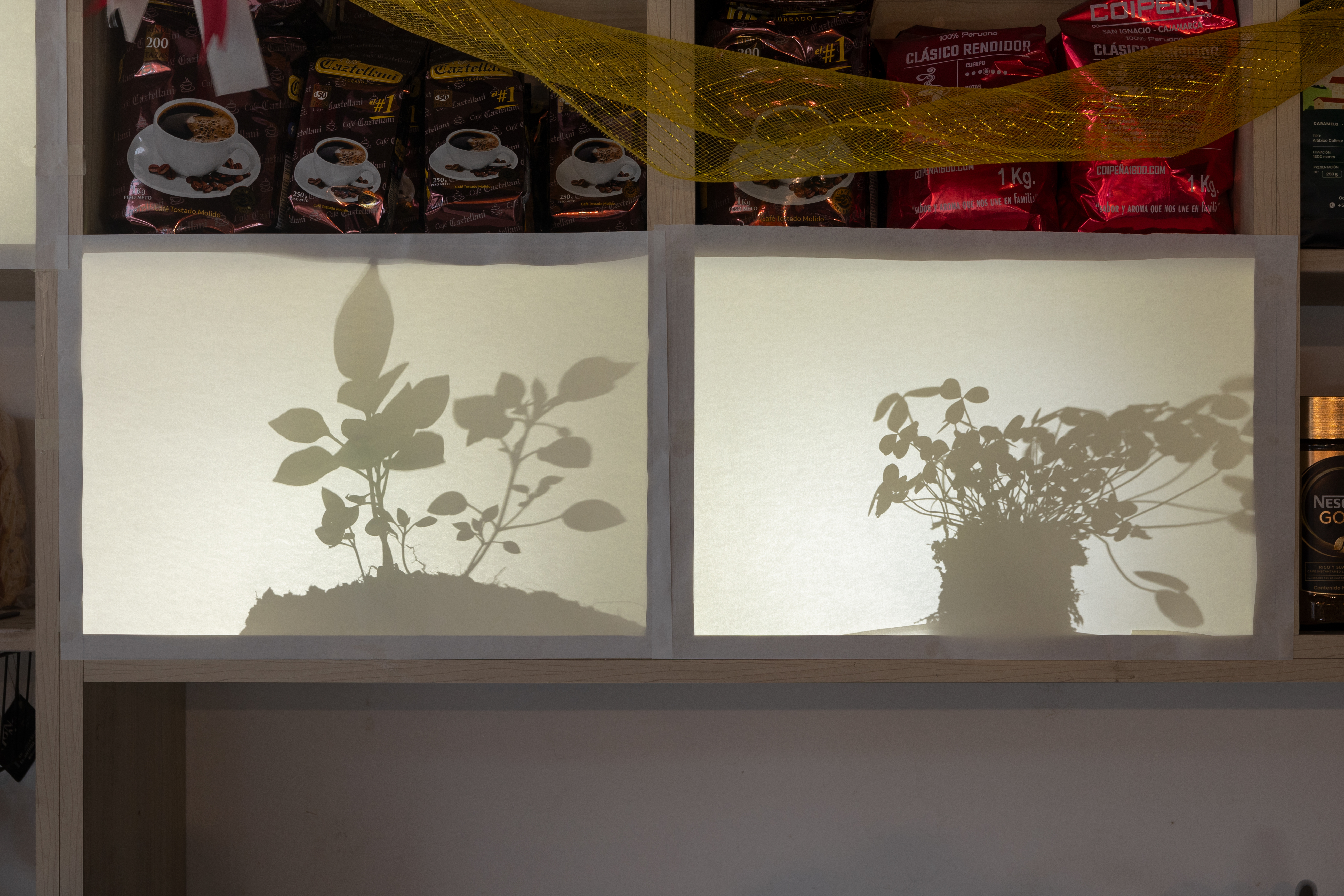 La pieza se materializa en dibujos de insumos-seres elaborados en papel artesanal a partir de tickets de venta, los cuales simbolizan el valor que el sistema asigna a cada recurso natural y a cada labor. Semillas, especias, azúcar, leche, huevo o manteca, provenientes del mundo natural, se transforman aquí en huellas visuales que evidencian el costo oculto de nuestra alimentación.